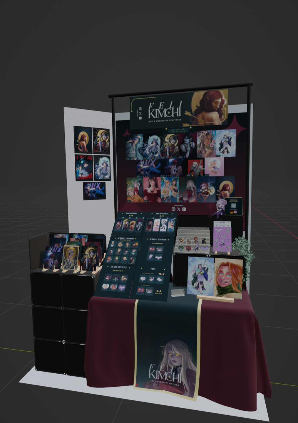 Welcome! I'm Kim — a professional 3D artist by day, and a passionate 2D illustrator and convention artist by night. I love bringing my favorite fandoms and lifelong original characters to life through art. My style ranges from magical and mysterious to soft and whimsical. Take a look around — I hope you find something that sparks your imagination!